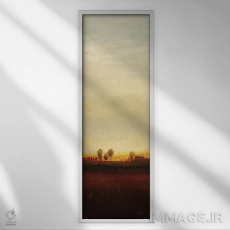 براساس پالت گرم اثر، قاب بلوط روشن (چوبی) پیشنهاد اول است و استخوانی ملایم مکمل. برای سفارشهای پروژهای با ابعاد و قابهای اختصاصی با ایماژ در تماس باشید.