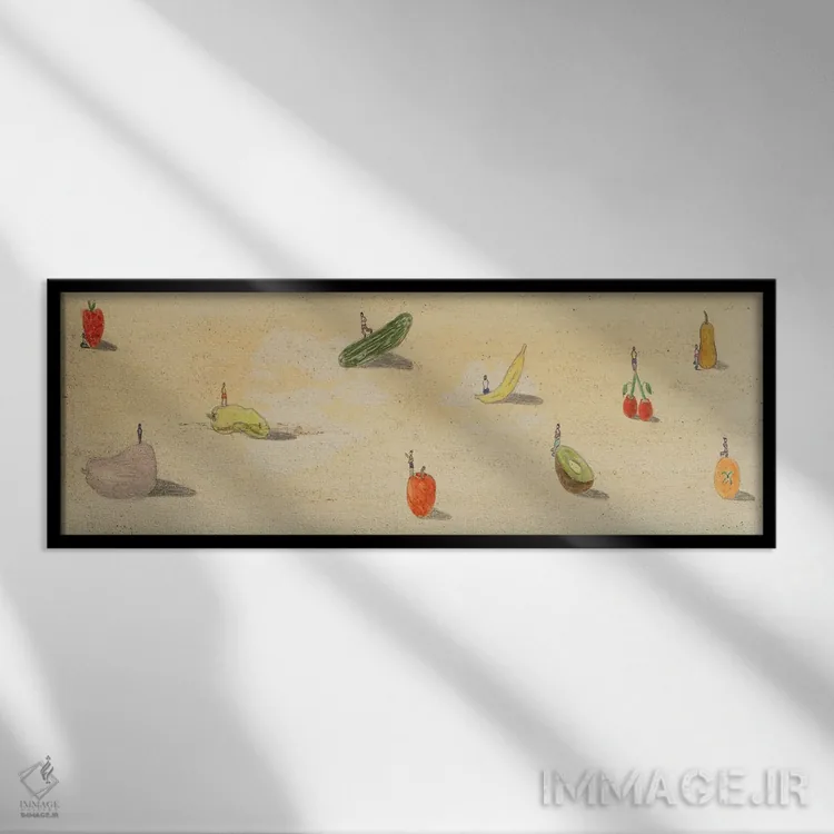 براساس پالت ترکیبی اثر، قاب بلوط روشن (چوبی) پیشنهاد اول است و استخوانی ملایم مکمل. برای سفارشهای پروژهای با ابعاد و قابهای اختصاصی با ایماژ در تماس باشید.