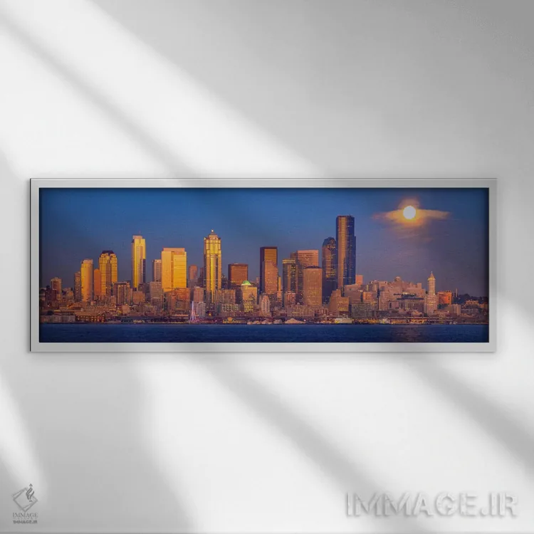 برای سلیقههایی که به جزئیات احترام میگذارند، «Seattle، Washington، ماه بر فراز سیاتل، واشنگتن» اثرِ «جیم نیلسن» در دکور، مثل یک امضای ظریف عمل میکند؛ برای کنار کتابخانه یا میز کار پیشنهاد میشود. به دیوار حس «تمامشده» میدهد.