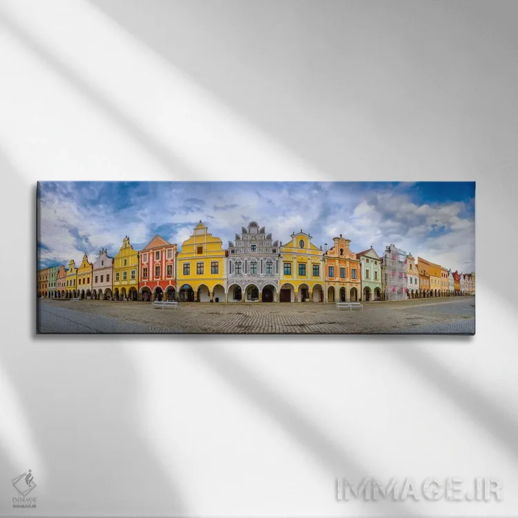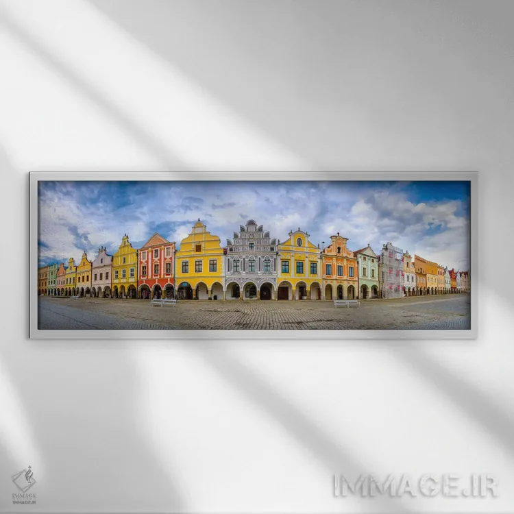 برای دکورهای ساختارمند و مدرن، «Telc، Czech Republic، پانورامای تلچ، جمهوری چک» اثرِ «جیم نیلسن» پرسپکتیو و خطوط را به مرکز توجه تبدیل کند؛ برای نشیمنهای مینیمال انتخابی خوشسلیقه است. با نورپردازی خطی، خطوط اثر خواناتر هم میشود.