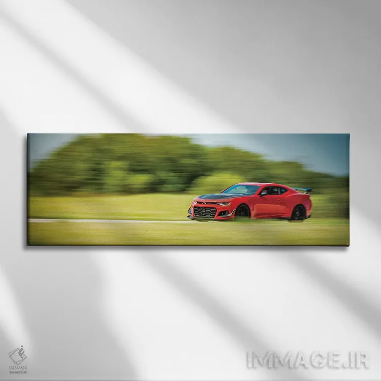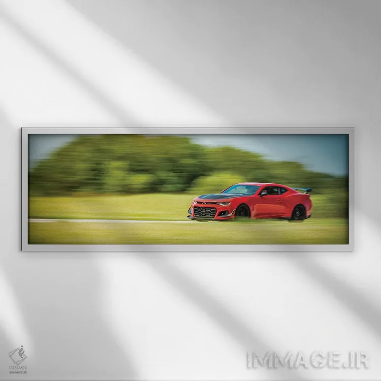 در نگاه اول، «شورولت کاماروی قرمز در حرکت» اثرِ «نیک ریو» چیدمان را از حالت پراکنده خارج میکند؛ برای فضاهایی که میخواهید آرام اما جدی دیده شوند پیشنهاد میشود. در چیدمانهای مختلف، هماهنگپذیر و انعطافدار است.