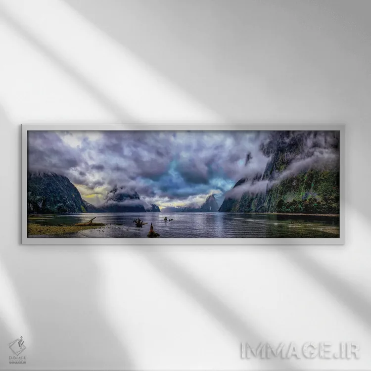 تابلو فیورد میلفورد ساند، پارک ملی فیوردلند نیوزیلند اثر اولنا آرت (استودیو هنری) - نمای قاب‌دار سفید