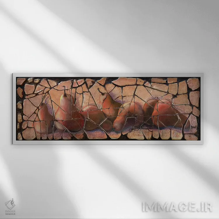 این تابلو با عنوان «گلابیها به سبک فرسکو» اثرِ «اولنا آرت (استودیو هنری)»، حسِ گرم و صمیمی به فضا میدهد.