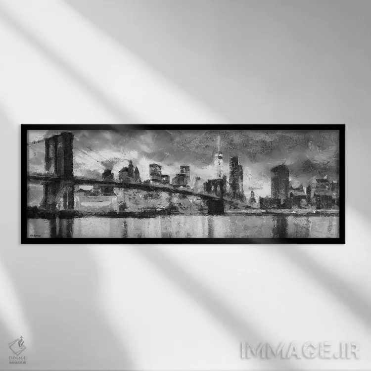 این تابلو با عنوان «نیویورک سیاه و سفید» اثرِ «پی.دی. مورنو» دیوار را از تزئین به «حضور» تبدیل میکند؛ برای اتاق کار و گوشهٔ مطالعه پیشنهاد میشود. جزئیاتش نزدیکِ کار هم ارزش نگاه دارد.