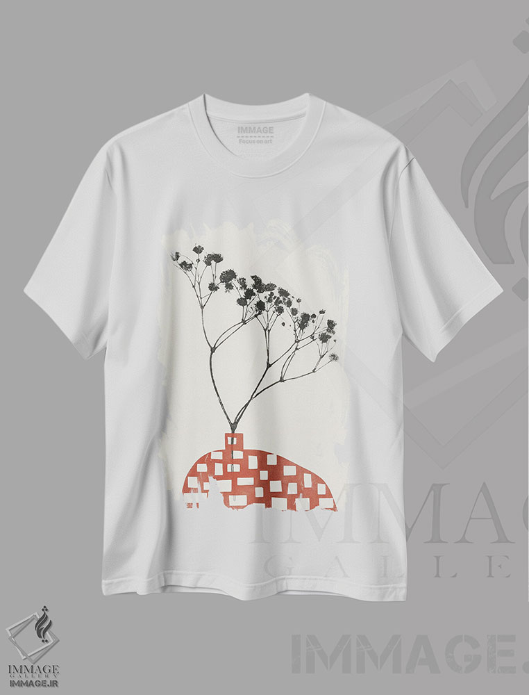 تیشرت طرح دار گل ژیپسوفیلا در گلدان قرمز اثر آلیسا گالیتسینا