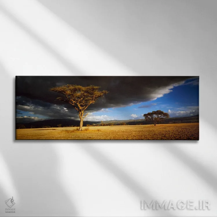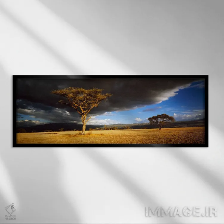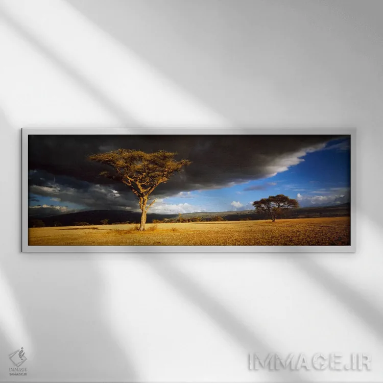برای سلیقههایی که به جزئیات احترام میگذارند، «درخت با ابرهای طوفانی تانزانیا» اثرِ «پانورامیک ایمجز (استودیو عکاسی عریض)» سلیقهٔ صاحبخانه را بیاغراق نشان میدهد؛ برای کنار کتابخانه یا میز کار پیشنهاد میشود. در کنار نورپردازی نقطهای، جلوهاش حرفهایتر میشود.