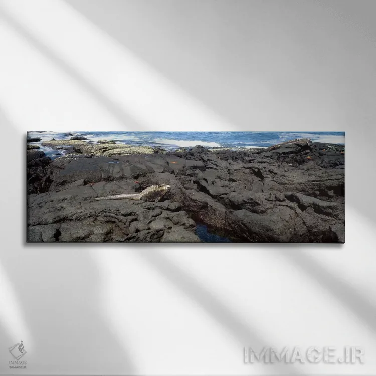 تابلو ایگوانای دریایی (Amblyrhynchus cristatus) بر روی سنگ آتشفشانی، جزیره ایزابل، جزایر گالاپاگوس، اکوادور اثر پانورامیک ایمجز (استودیو عکاسی عریض) - نمای روبه‌رو روی دیوار