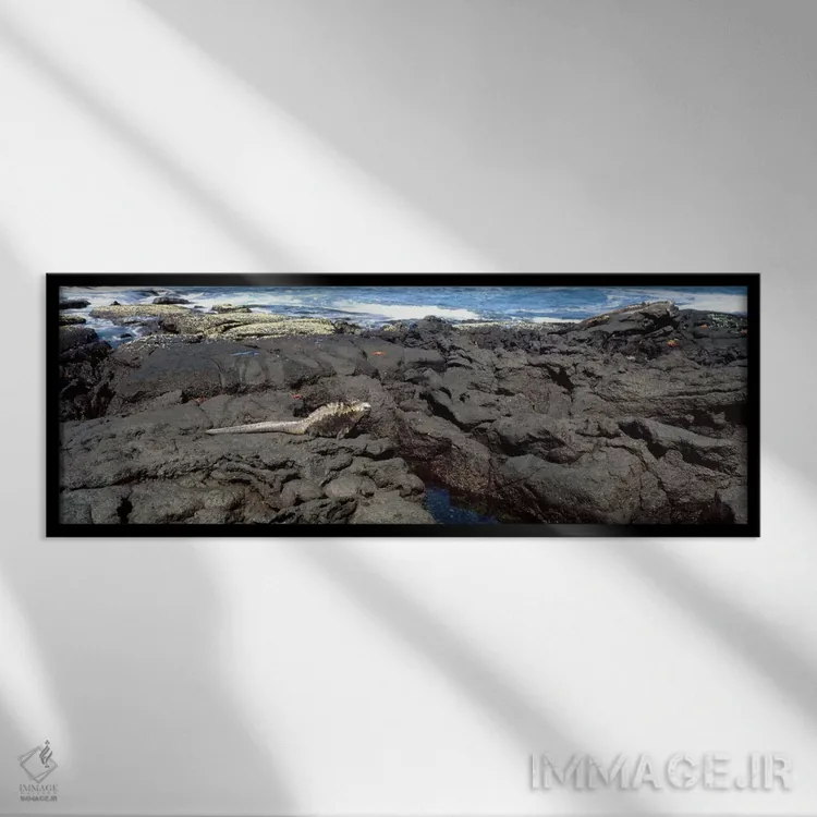 تابلو ایگوانای دریایی (Amblyrhynchus cristatus) بر روی سنگ آتشفشانی، جزیره ایزابل، جزایر گالاپاگوس، اکوادور اثر پانورامیک ایمجز (استودیو عکاسی عریض) - نمای قاب‌دار مشکی