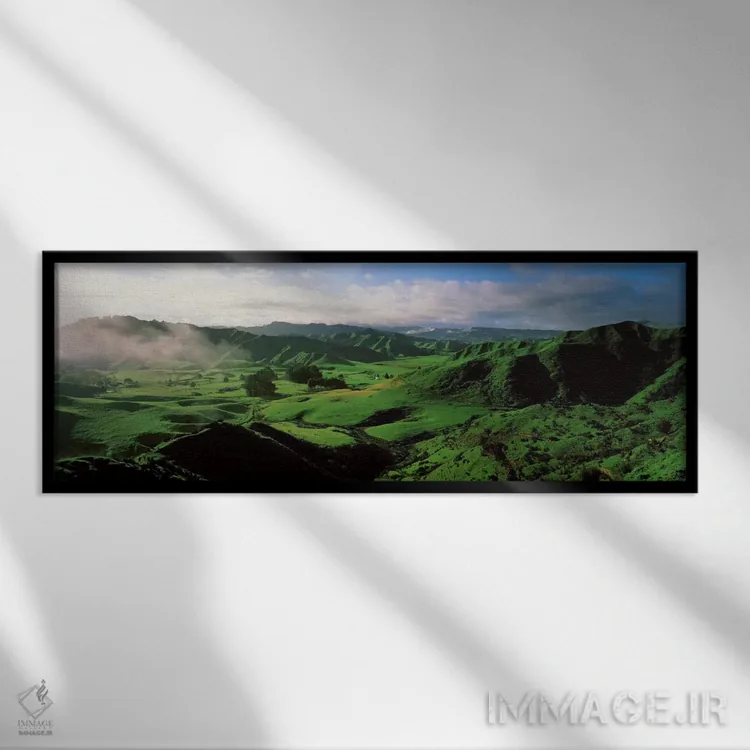 وقتی چیدمان را با دقت میچینید، «زمینهای کشاورزی، تارانا، نیوزیلند» اثرِ «پانورامیک ایمجز (استودیو عکاسی عریض)» به فضا، روایت ملایم و قابل لمس میدهد؛ برای کنار کتابخانه یا میز کار پیشنهاد میشود. فضا را شلوغ نمیکند؛ فقط دقیقترش میکند.