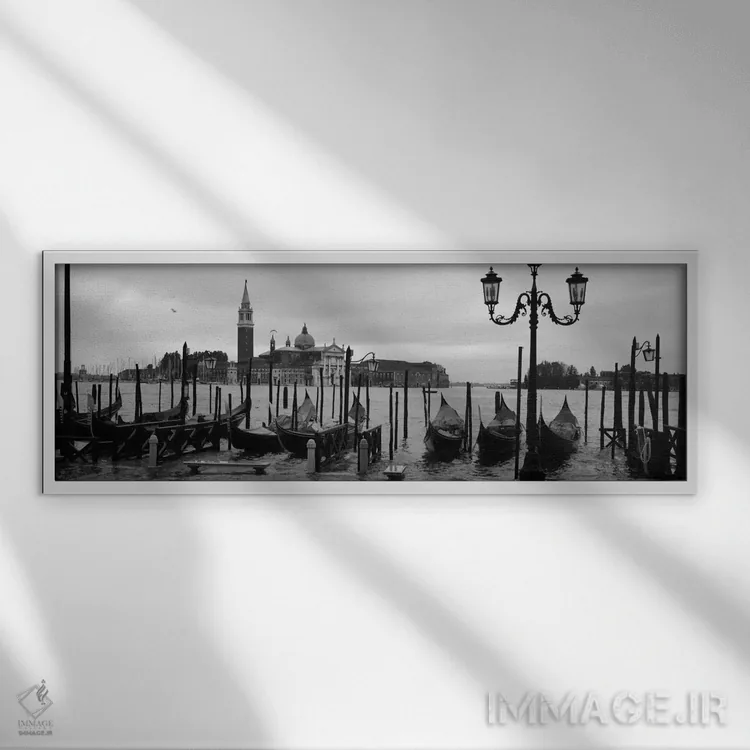در «گوندولاها با کلیسایی در پسزمینه، کلیسای سان جوردیو ماگیوره، سان جوردیو ماگیوره، ونیز، ونتو، ایتالیا»، اثرِ «پانورامیک ایمجز (استودیو عکاسی عریض)» این اثر را با زبان سیاهوسفید ارائه میکند؛ برای دکورهای کلاسیک—مدرن یک انتخاب مطمئن و هماهنگپذیر است.
