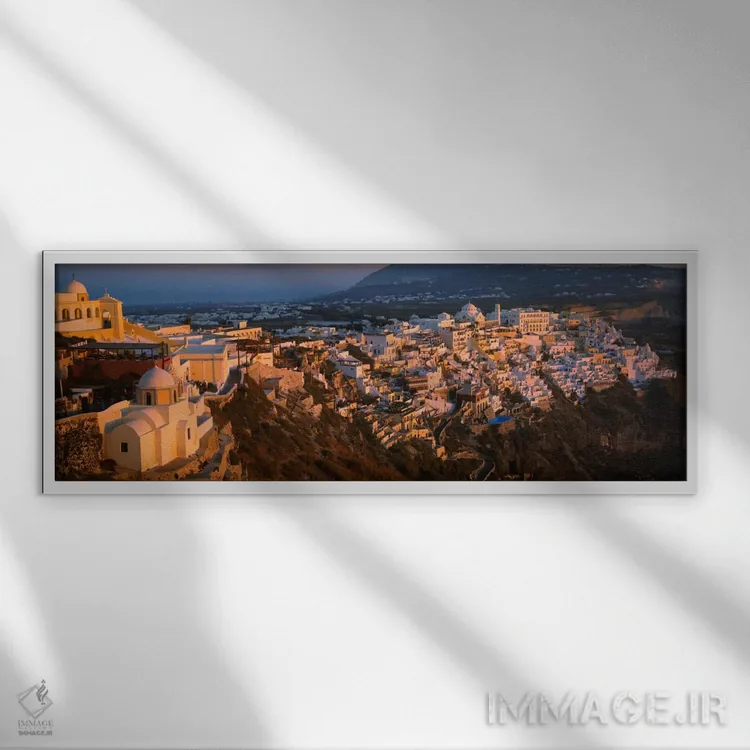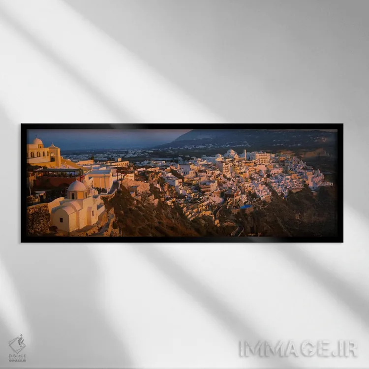 تابلو دکوراتیو نمای زاویه بالا از ساختمان ها در یک شهر، فیرات، سانتوری… اثر پانورامیک ایمجز