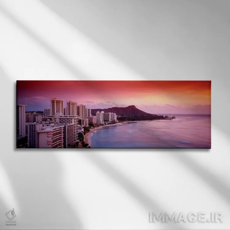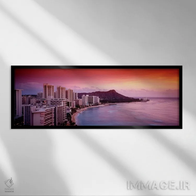 این تابلو با عنوان «"غروب هونولولو، اوآهو، هاوایی، ایالات متحده آمریکا"» اثرِ «پانورامیک ایمجز (استودیو عکاسی عریض)» یک مرکز توجهِ باوقار میسازد؛ برای کنار کتابخانه یا میز کار پیشنهاد میشود. در کنار قاب مناسب، جلوهٔ کار چند برابر میشود.