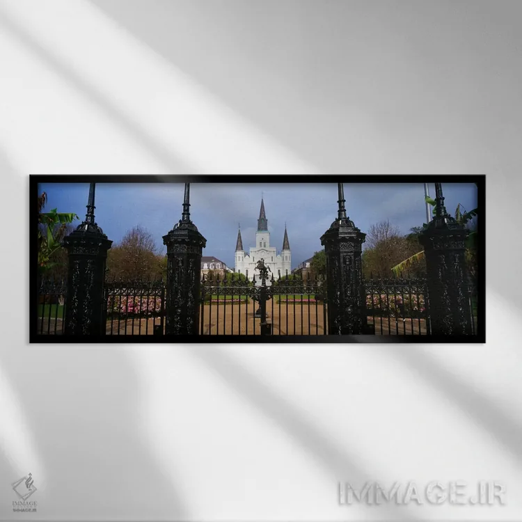 تابلو "نمای کلیسای سنت لوئیس، نیواورلئان، لوئیزیانا، ایالات متحده آمریکا" اثر پانورامیک ایمجز (استودیو عکاسی عریض) - نمای قاب‌دار سفید