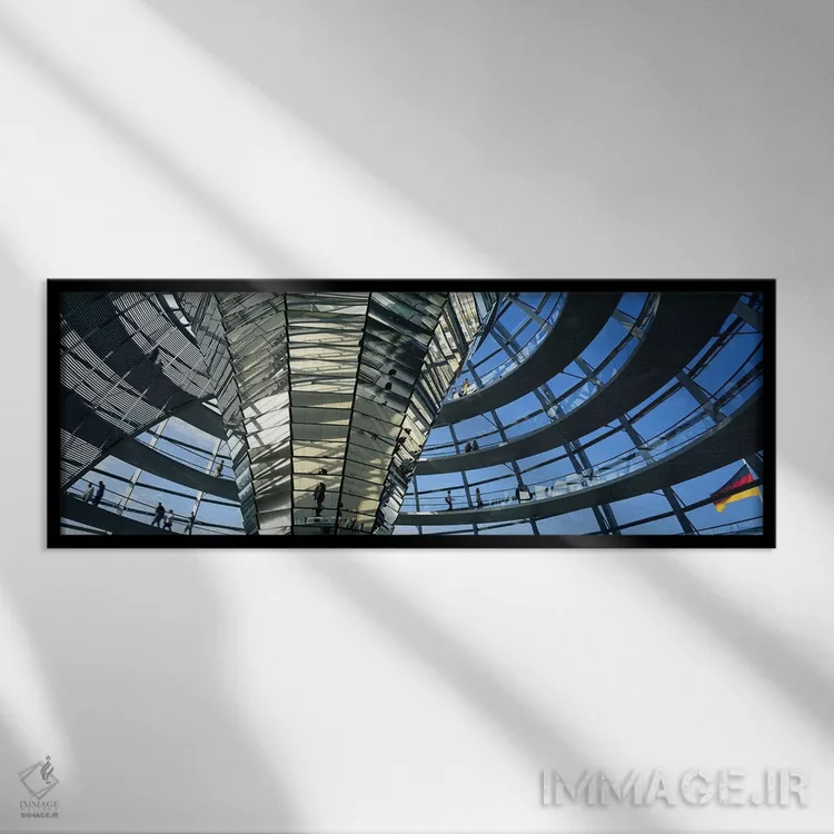 برای فضایی که میخواهید مرتبتر و حرفهایتر دیده شود، «گنبد شیشهای رایشتاگ برلین آلمان» اثرِ «پانورامیک ایمجز (استودیو عکاسی عریض)» روی دیوار، تمیز و دقیق دیده میشود؛ برای فضاهای مدرن با خطوط ساده پیشنهاد میشود. برای فضاهایی که دنبال «وقار» هستند، انتخابی مطمئن است.