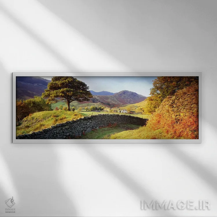 «Lake District، Cumbria County، England، United Kingdom، چشمانداز روستایی، منطقه لیک دیستریکت، شهرستان کامبریا، انگلستان، بریتانیا» اثرِ «پانورامیک ایمجز (استودیو عکاسی عریض)» از آن انتخابهاییست که جلوهٔ دیوار را منسجمتر میکند؛ برای فضاهایی که میخواهید مرکز توجه داشته باشند انتخابی عالی است. به دیوار حس «تمامشده» میدهد.