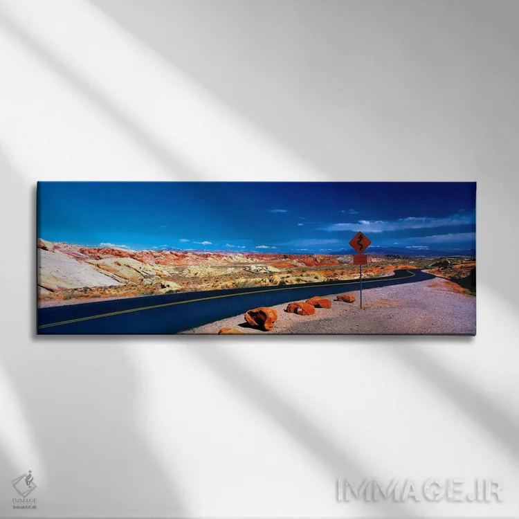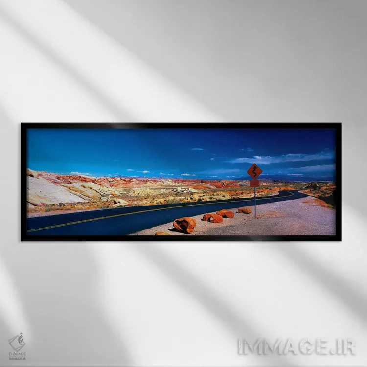 «جاده، پارک ایالتی ولی آو فایر، اورتون، نوادا» اثرِ «پانورامیک ایمجز (استودیو عکاسی عریض)» از آن انتخابهاییست که ریتم فضا را منظم میکند؛ برای دکورهایی که بافت و جزئیات در آن مهم است انتخابی عالی است. برای ترکیب با چوب، سنگ یا فلز، انتخابی دقیق است.