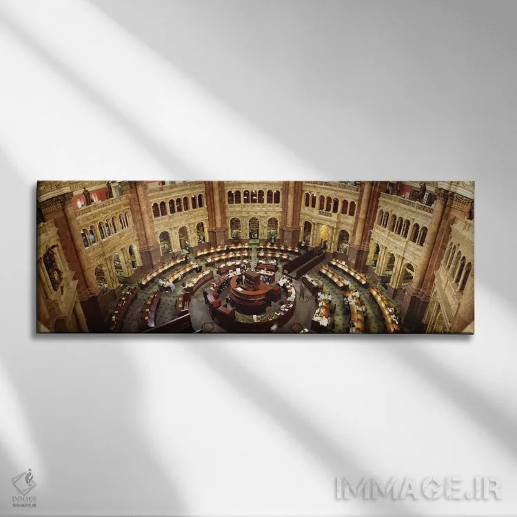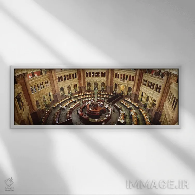 برای دیواری که دوست دارید «حرف داشته باشد»، «Washington DC، USA، نمای بالا از سالن مطالعه کتابخانه کنگره، واشنگتن دیسی، آمریکا» اثرِ «پانورامیک ایمجز (استودیو عکاسی عریض)» ریتم فضا را منظم میکند؛ برای فضاهای کمنور که به «نقطهٔ روشن» نیاز دارند پیشنهاد میشود. در چیدمانهای مختلف، هماهنگپذیر و انعطافدار است.