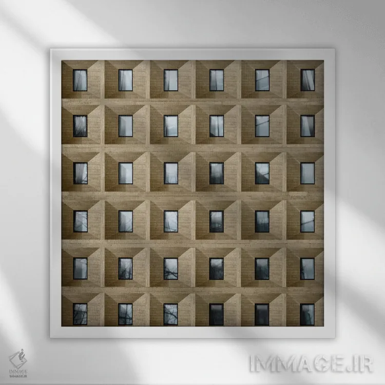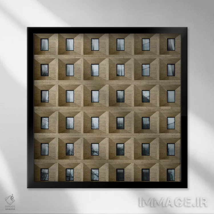 «پنجره انتزاعی شش» اثرِ «دانیلو د آلکساندریا» میتواند در کنار بتن، فلز یا چوب عالی بنشیند؛ برای اتاق کار پیشنهاد شود. با قاب مشکی مات، جلوهٔ تمیزتری پیدا میکند.