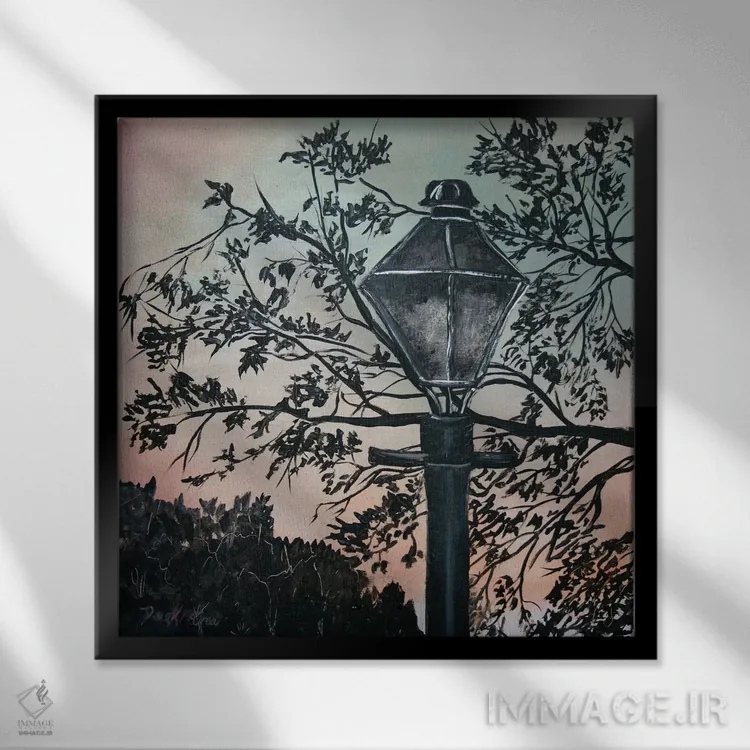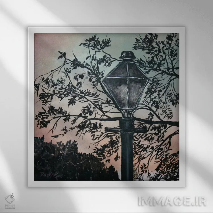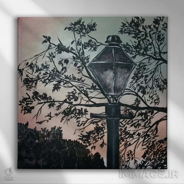 در «نقاشی چراغ خیابانی» اثرِ «درک مککری»، عناصر گیاهی نقش اصلی دارند؛ مناسب برای فضاهایی که دنبال آرامش و لطافت پُرانرژی.