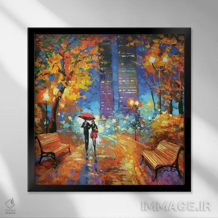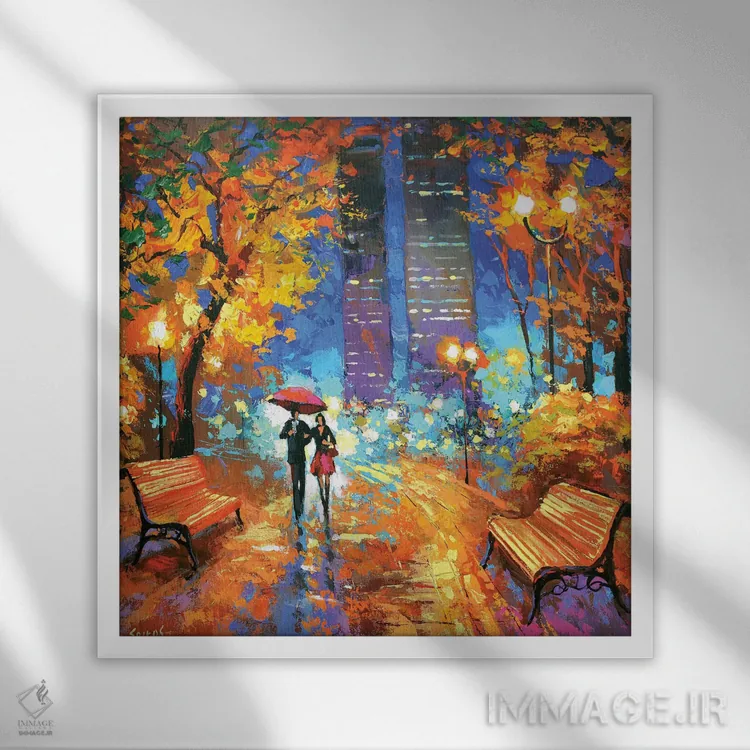 براساس پالت ترکیبی اثر، قاب تیک گرم (چوبی) پیشنهاد اول است و مشکی مات (فریم متوسط) مکمل. برای سفارشهای پروژهای با ابعاد و قابهای اختصاصی با ایماژ در تماس باشید.