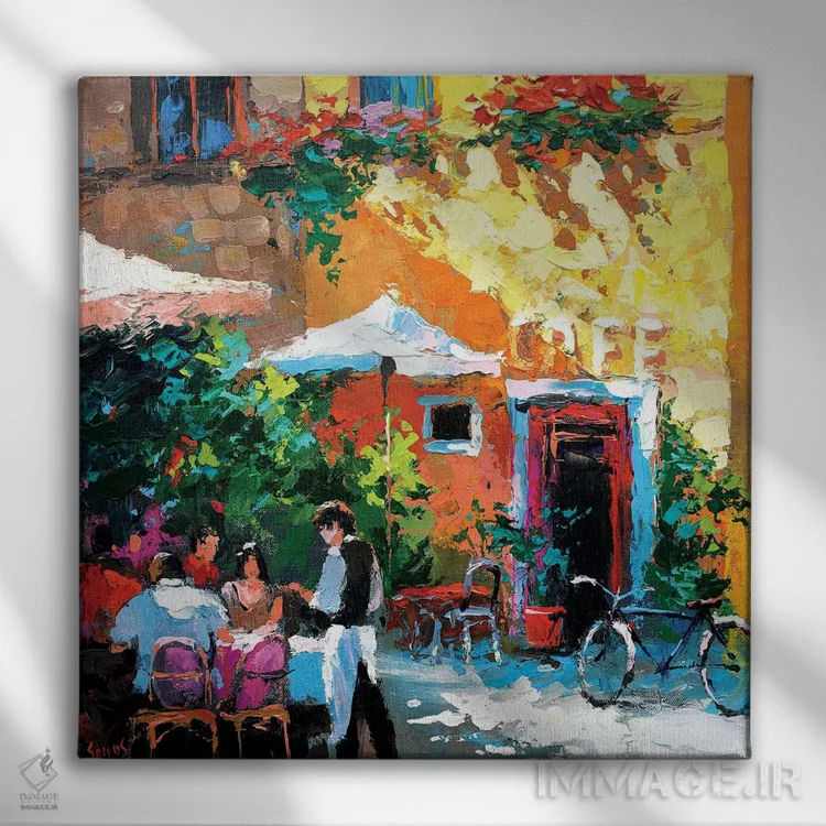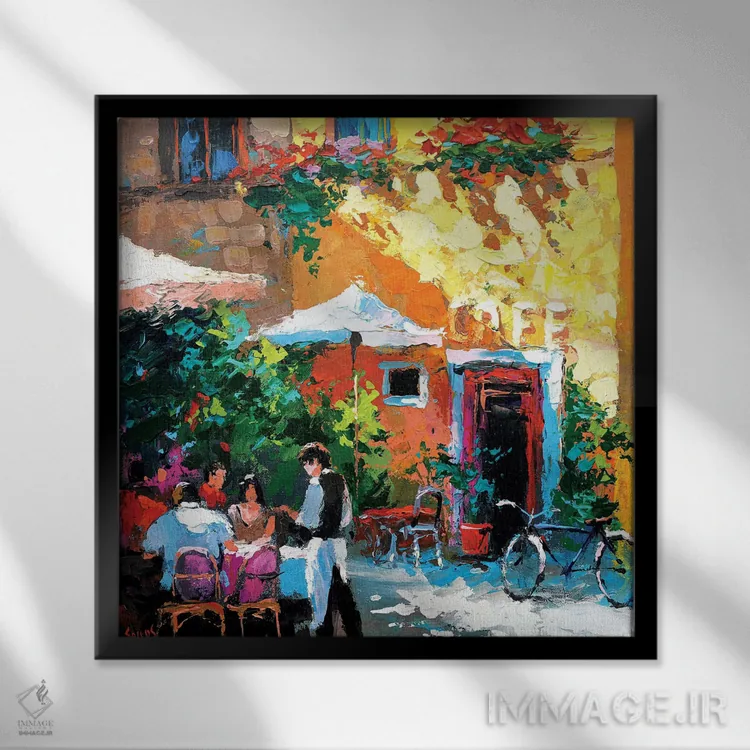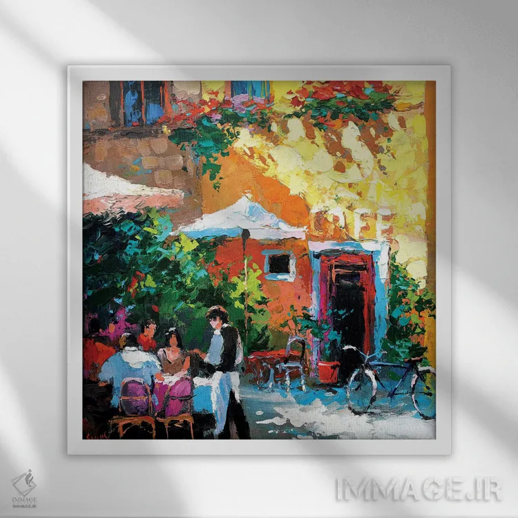 اگر دوست دارید دیوار روشنتر و آرامتر دیده شود، «میخانه قدیمی» اثرِ «دمیتری اسپیروس» مثل یک قطعهٔ دکورِ همیشهبهروز عمل میکند، برای نشیمنهای روشن گزینهٔ مناسبیست. در کنار گیاهان آپارتمانی، هماهنگتر هم میشود.