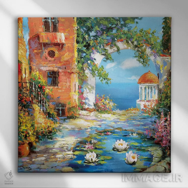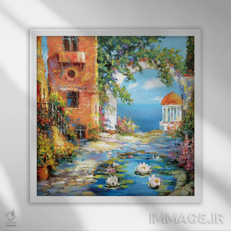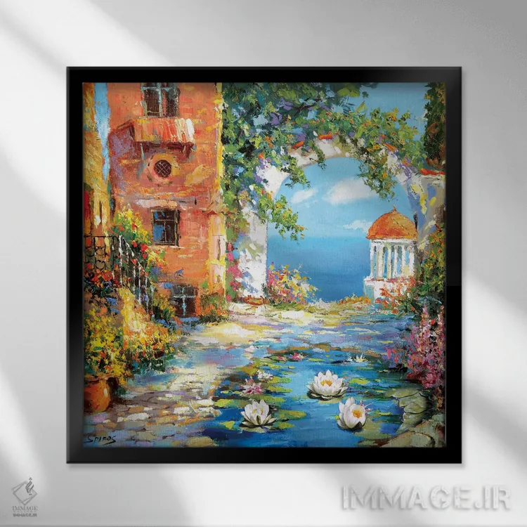 برای دیواری که میخواهید نرمتر دیده شود، «حیاط قدیمی» اثرِ «دمیتری اسپیروس» مثل یک قطعهٔ دکورِ همیشهبهروز عمل میکند؛ برای خانههایی با نور طبیعی انتخابی خوشسلیقه است. اگر دنبال «زیباییِ بیصدا» هستید، این اثر همان حس را دارد.
