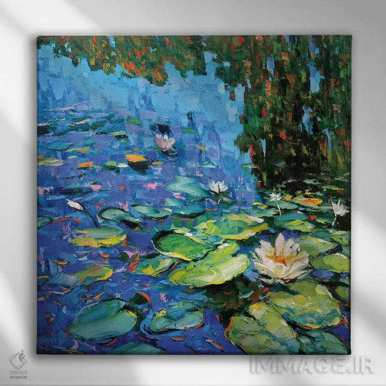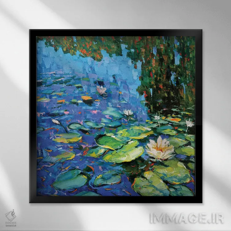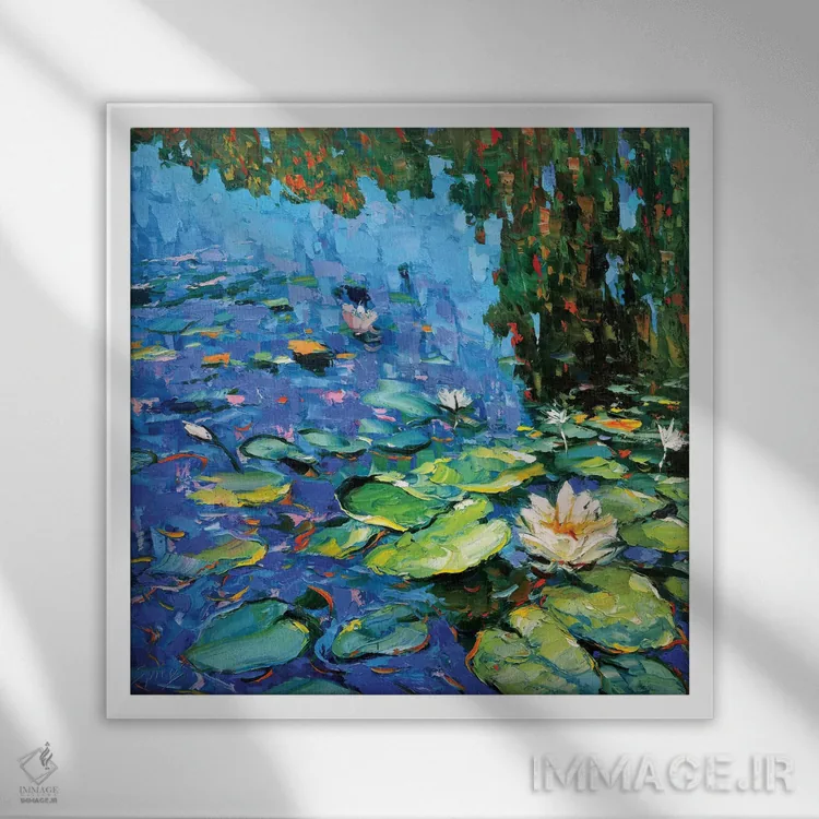 برای خانههایی که به زیباییِ آرام علاقه دارند، «نیلوفرهای آبی شکوفا» اثرِ «دمیتری اسپیروس» ریتم فضا را منظم میکند؛ برای خانههایی که به هماهنگی رنگها اهمیت میدهند پیشنهاد میشود. حضورش روی دیوار «مرتب» است؛ نه پر سر و صدا، نه بیاثر.