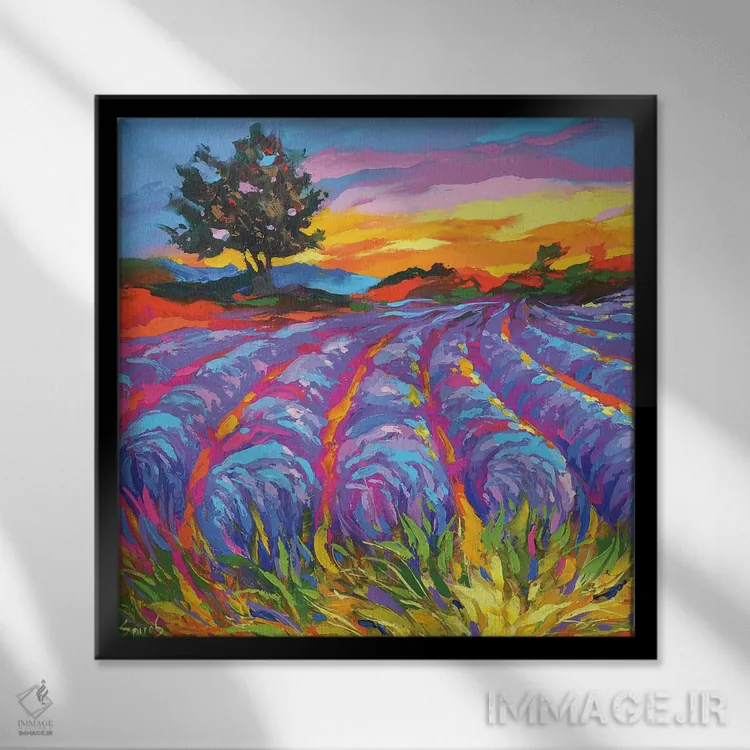 براساس پالت ترکیبی اثر، قاب تیک گرم (چوبی) پیشنهاد اول است و مشکی مات (فریم متوسط) مکمل. برای سفارشهای پروژهای با ابعاد و قابهای اختصاصی با ایماژ در تماس باشید.