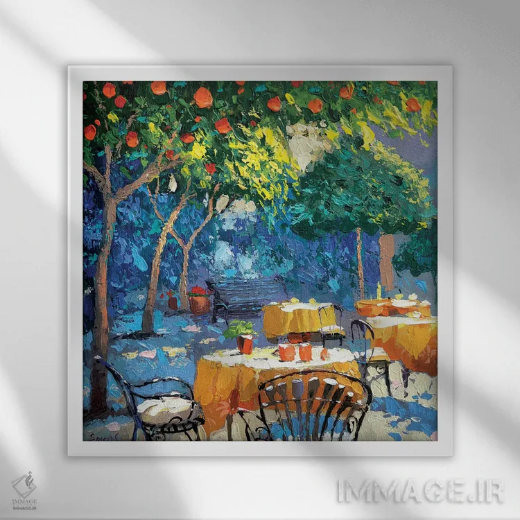 براساس پالت ترکیبی اثر، قاب تیک گرم (چوبی) پیشنهاد اول است و مشکی مات (فریم متوسط) مکمل. برای سفارشهای پروژهای با ابعاد و قابهای اختصاصی با ایماژ در تماس باشید.
