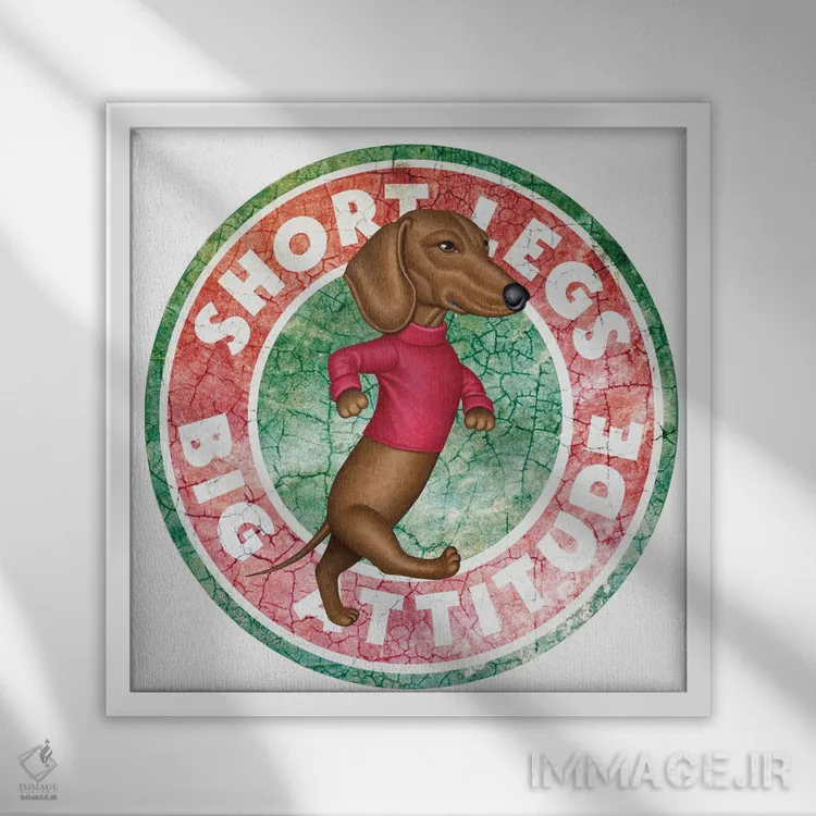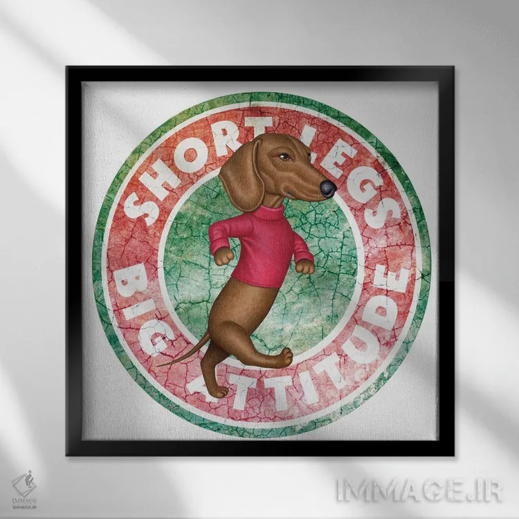 تابلو سگ داشهوند در حال قدم زدن در دایرهای با ظاهر قدیمی اثر دنی گوردون