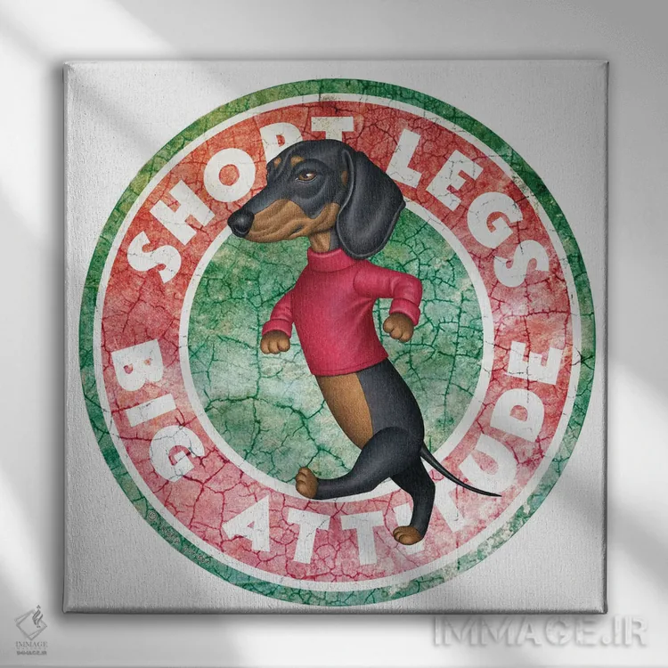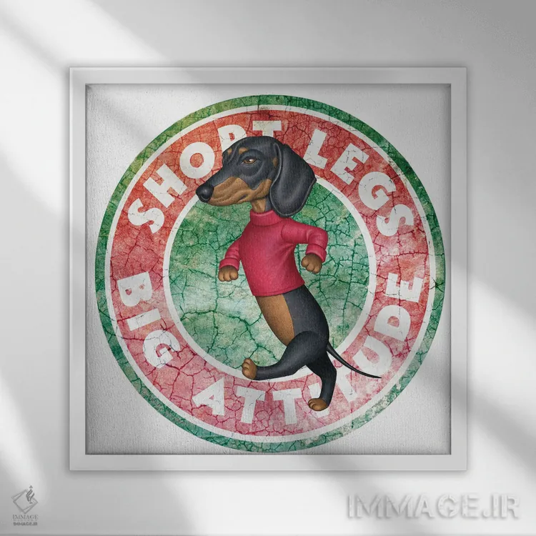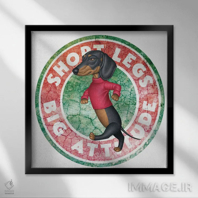 تابلو سگ داشهوند مشکی در دایرهای با ظاهر کهنه اثر دنی گوردون
