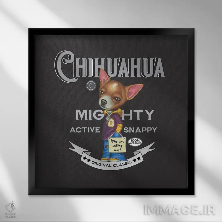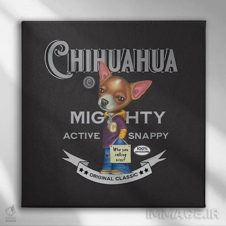 برای دیوارهای ساده، «چیهواهوا با هودی و شلوار جین به سبک قدیمی» اثرِ «دنی گوردون» یک لبخند ریز به چیدمان میدهد؛ برای فضاهای روستیک یا بوهو انتخابی خوشسلیقه است. هر بار نگاهش میکنید، یک جزئیات تازه به چشم میآید.