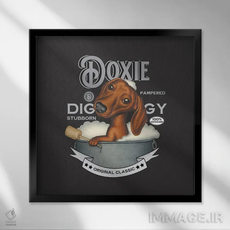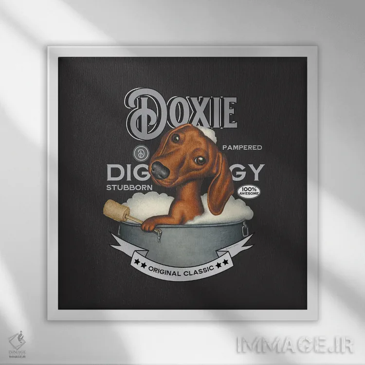 تابلو دکوراتیو سگ داشهوند در وان حمام با سبک قدیمی اثر دنی گوردون