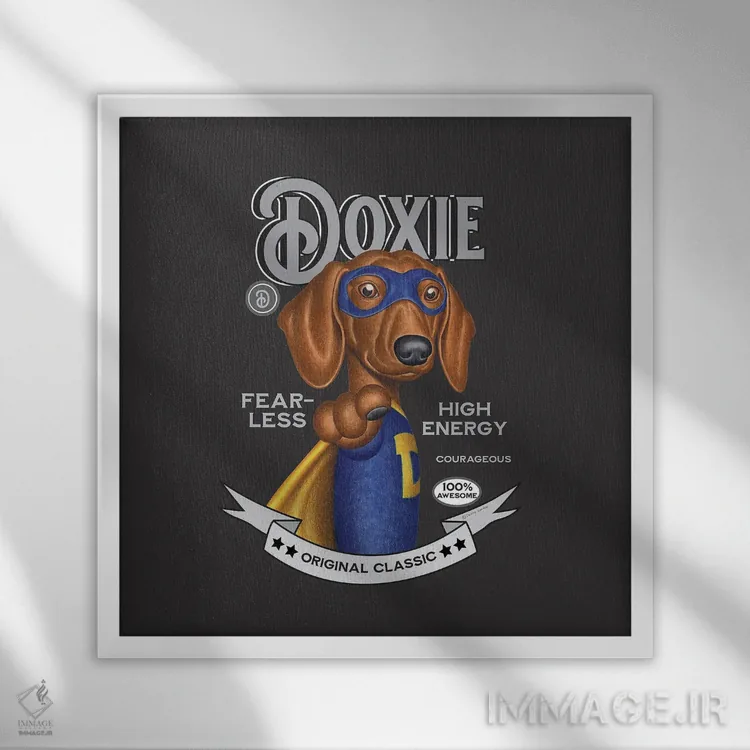 تابلو دکوراتیو داشهوند ابرقهرمان با حرف D روی سینه اثر دنی گوردون