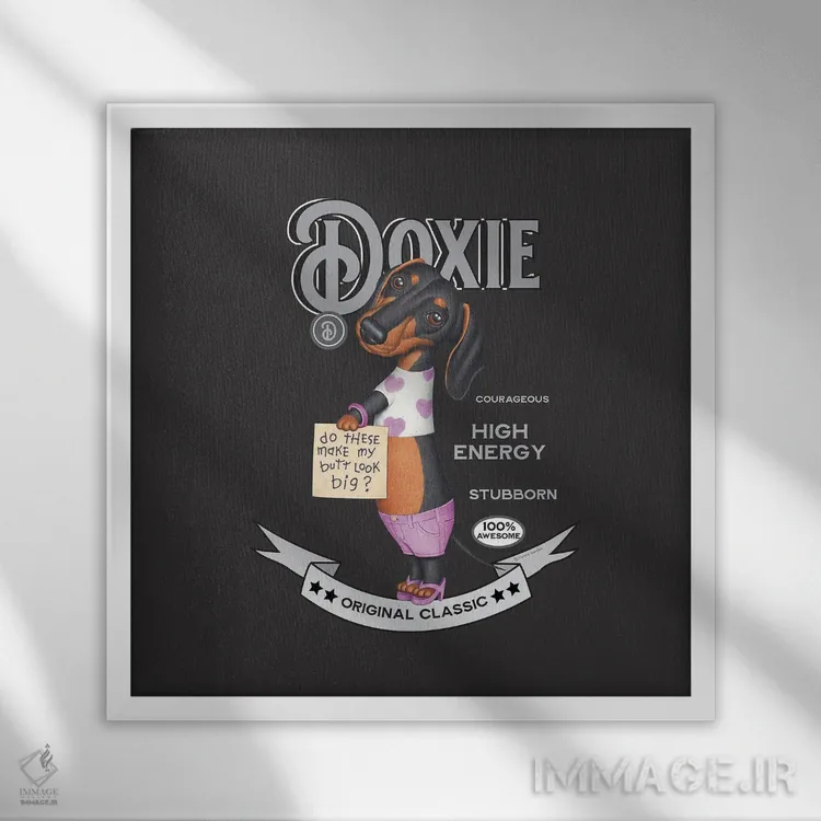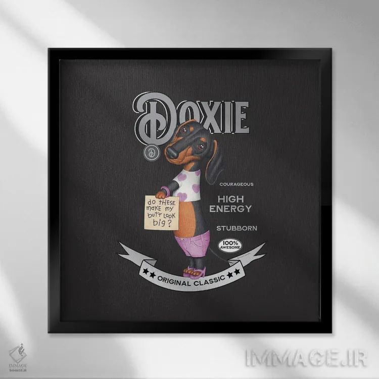 تابلو سگ داشهوند مشکی با کفش پاشنهبلند به سبک قدیمی اثر دنی گوردون