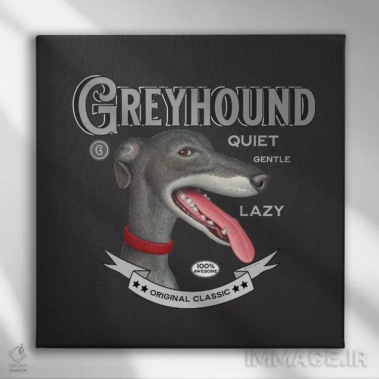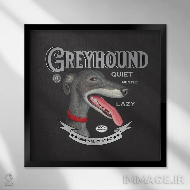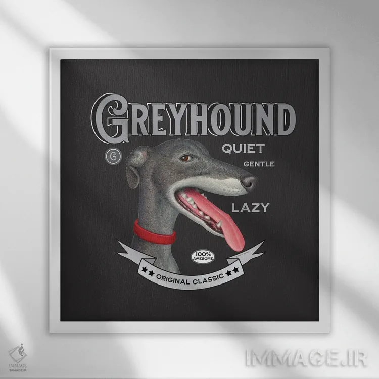 تابلو سگ گریهاند خاکستری با قلاده قرمز به سبک قدیمی اثر دنی گوردون