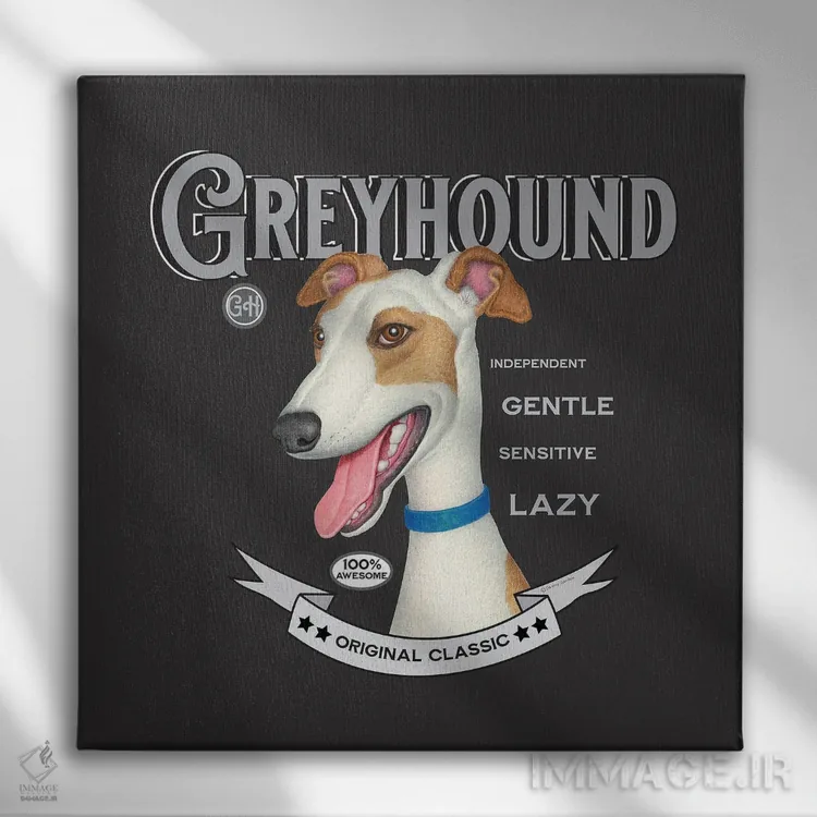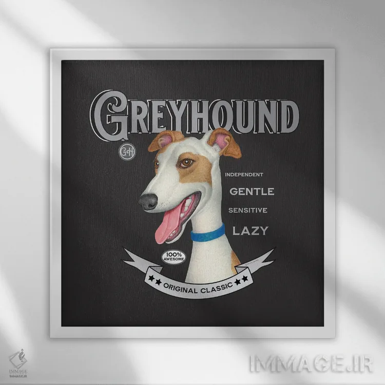 تابلو سگ گریهاند طلایی و سفید به سبک قدیمی اثر دنی گوردون