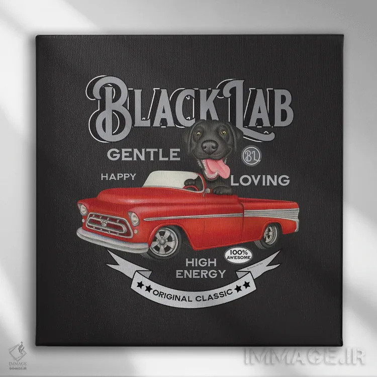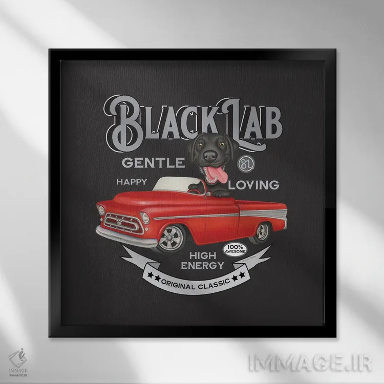تابلو لابرادور مشکی در کامیون قرمز به سبک قدیمی اثر دنی گوردون