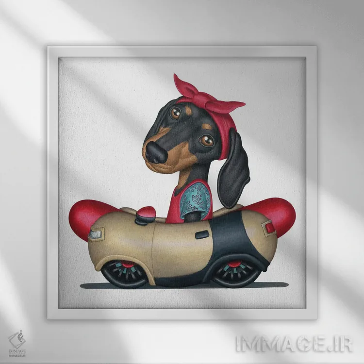 تابلو داشهوند پایپر در خودروی هات‌داگ اثر دنی گوردون - نمای قاب‌دار سفید