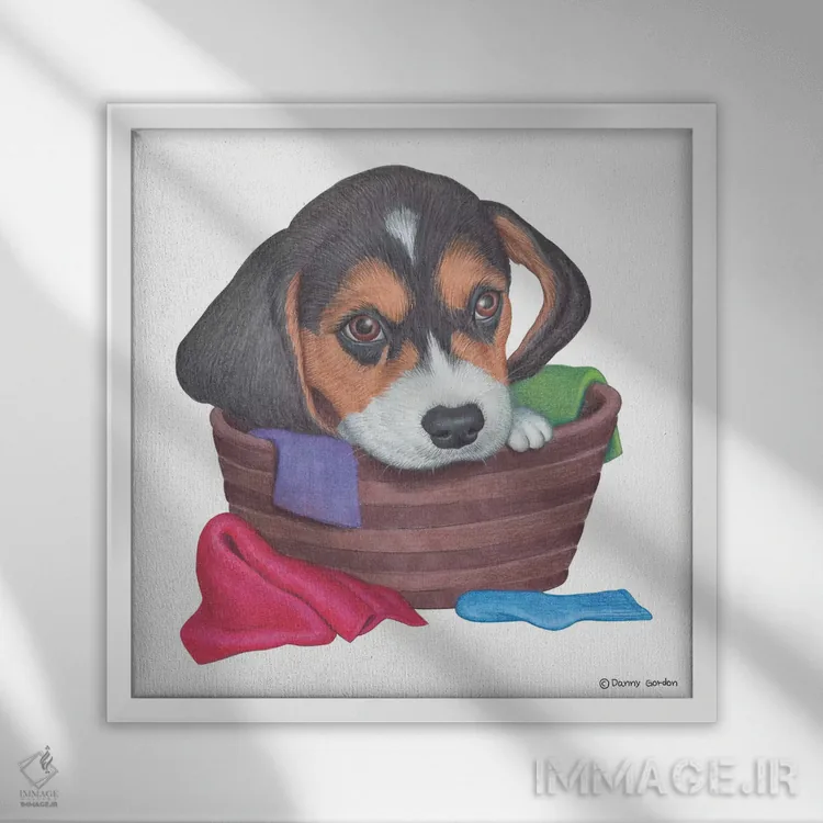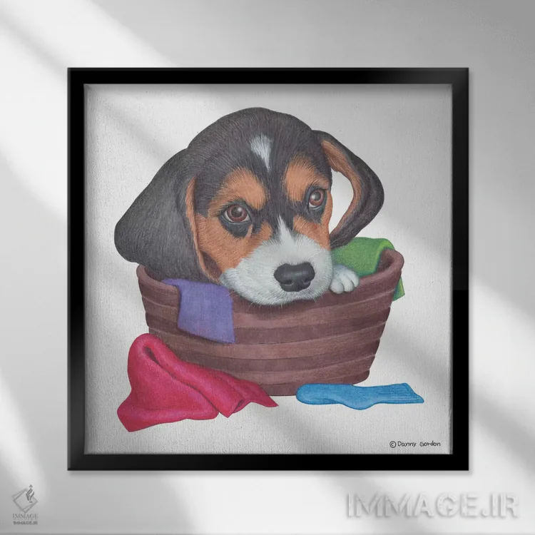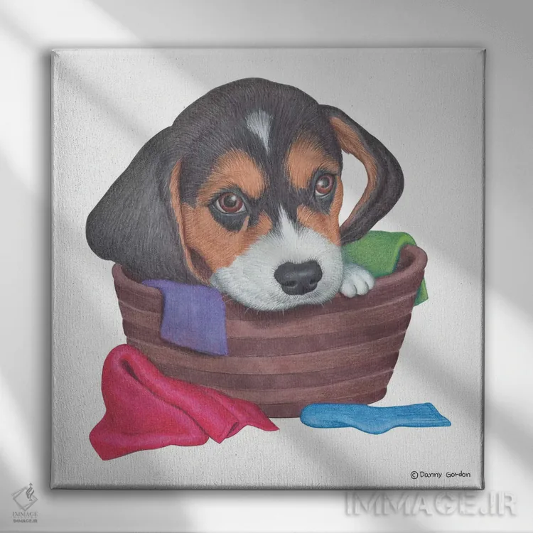 تابلو بیگل در سبد لباس اثر دنی گوردون - نمای پرسپکتیو محصول