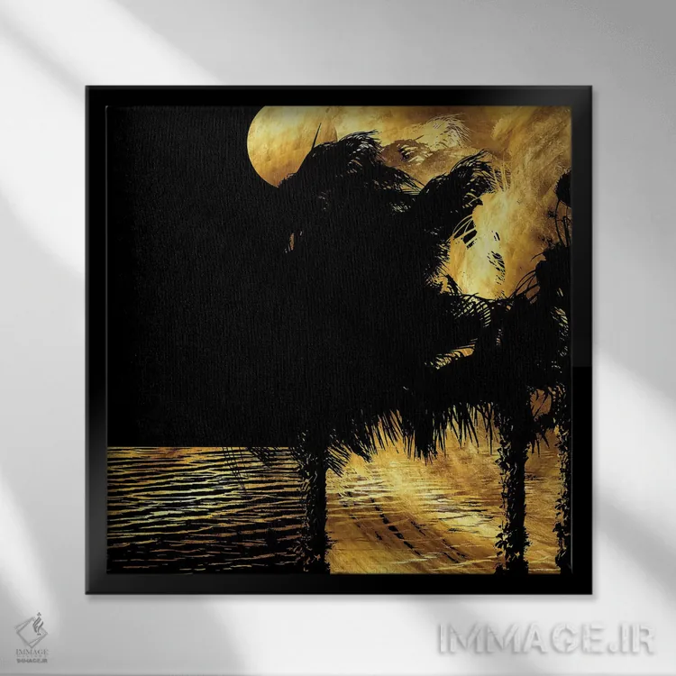 براساس پالت ترکیبی اثر، قاب تیک گرم (چوبی) پیشنهاد اول است و مشکی مات (فریم متوسط) مکمل.