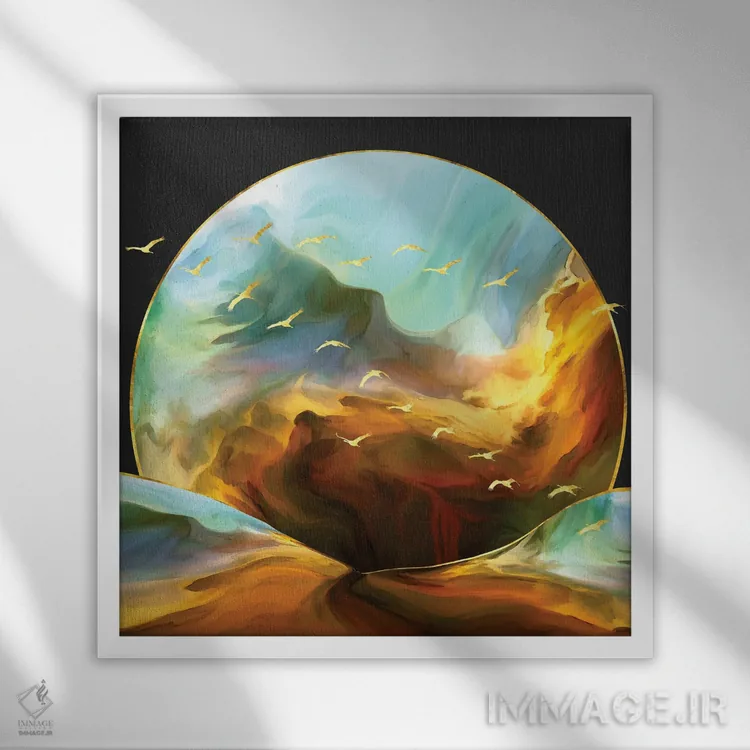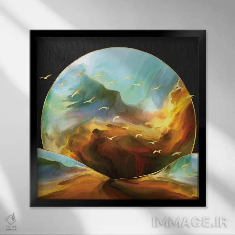 براساس پالت ترکیبی اثر، قاب تیک گرم (چوبی) پیشنهاد اول است و مشکی مات (فریم متوسط) مکمل. برای سفارشهای پروژهای با ابعاد و قابهای اختصاصی با ایماژ در تماس باشید.