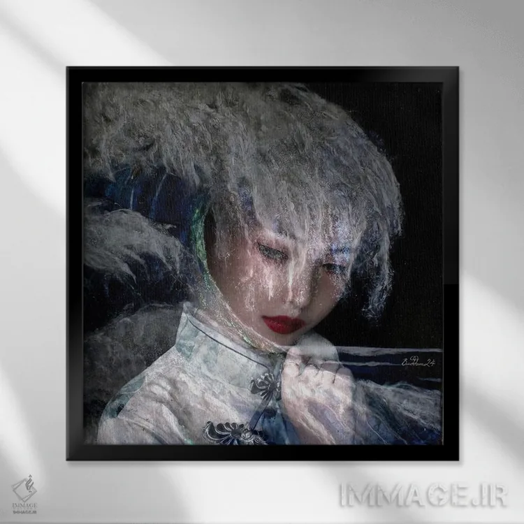 براساس پالت ترکیبی اثر، قاب تیک گرم (چوبی) پیشنهاد اول است و مشکی مات (فریم متوسط) مکمل. برای سفارشهای پروژهای با ابعاد و قابهای اختصاصی با ایماژ در تماس باشید.