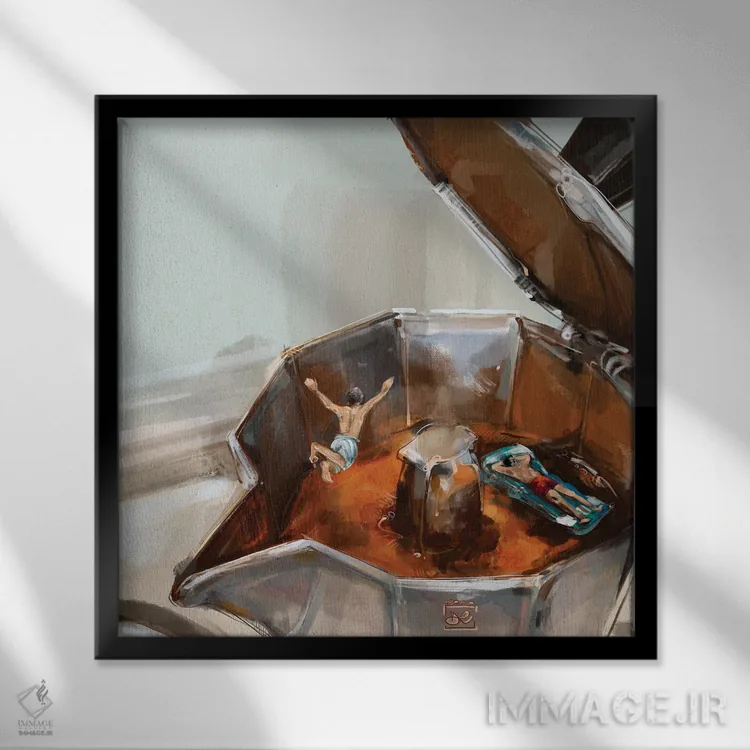 براساس پالت گرم اثر، قاب تیک گرم (چوبی) پیشنهاد اول است و مشکی مات (فریم متوسط) مکمل. برای سفارشهای پروژهای با ابعاد و قابهای اختصاصی با ایماژ در تماس باشید.