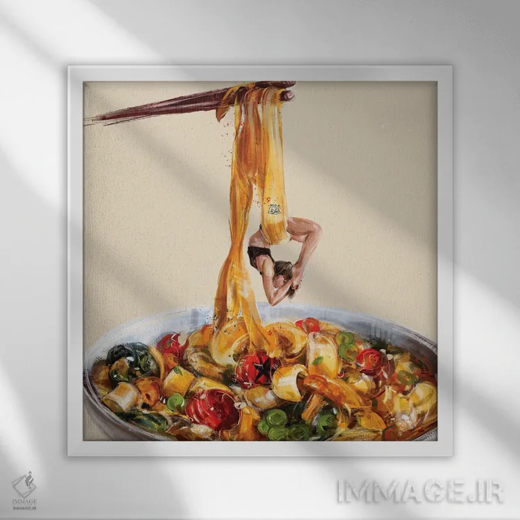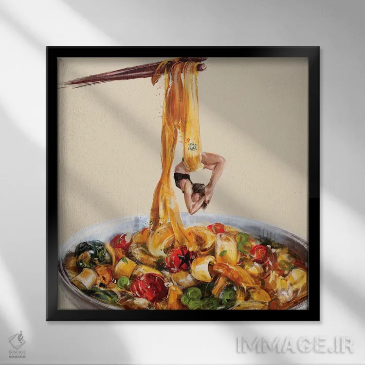 براساس پالت ترکیبی اثر، قاب بلوط روشن (چوبی) پیشنهاد اول است و استخوانی ملایم مکمل. برای سفارشهای پروژهای با ابعاد و قابهای اختصاصی با ایماژ در تماس باشید.