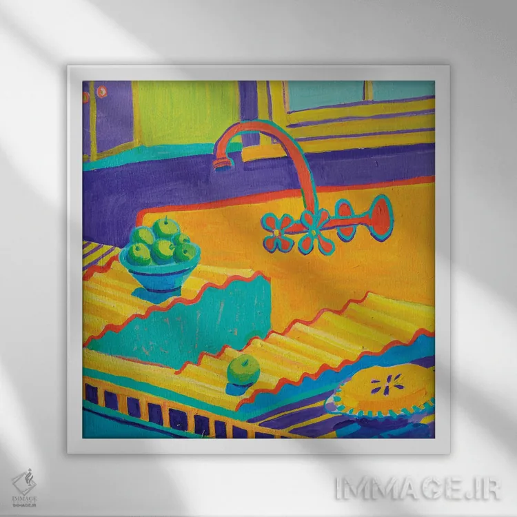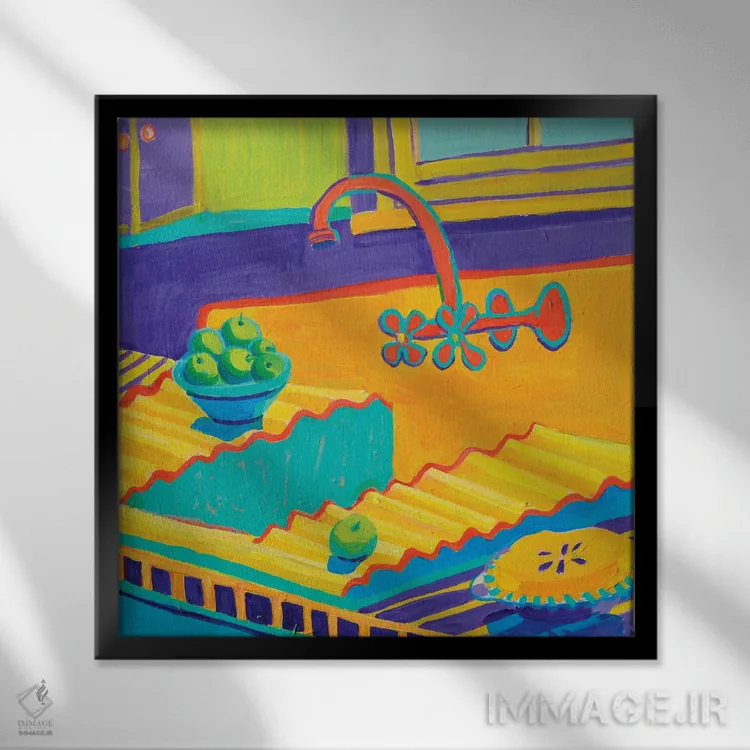 براساس پالت ترکیبی اثر، قاب تیک گرم (چوبی) پیشنهاد اول است و مشکی مات (فریم متوسط) مکمل. برای سفارشهای پروژهای با ابعاد و قابهای اختصاصی با ایماژ در تماس باشید.