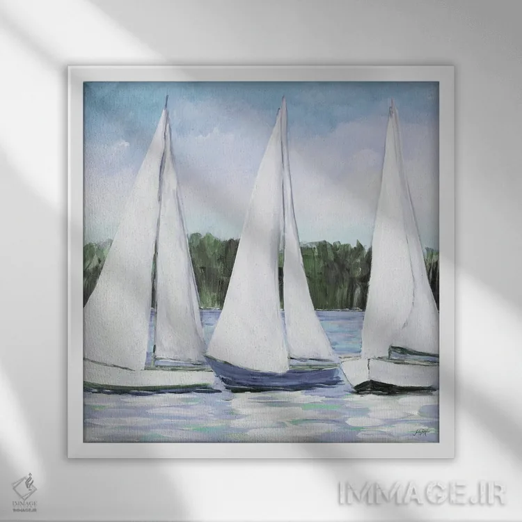 «بادبانهای سفید» اثرِ «جولی دریسه» با رنگوبوی ساحل و موضوعِ این اثر، برای راهرو، بالای کنسول یا دیوار شاخصِ پشت مبل انتخاب مناسبی است.
