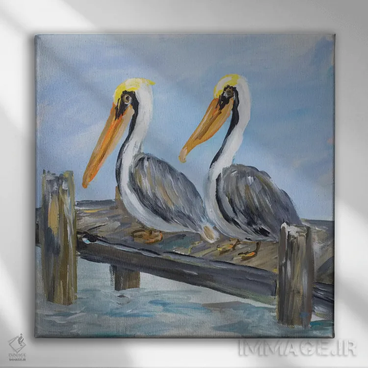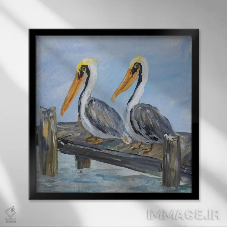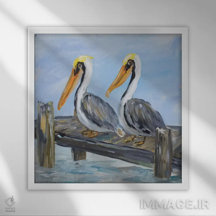 برای دکورهای صمیمی، «پلیکانها روی عرشه» اثرِ «جولی دریسه» در کنار رنگهای خنثی، تضاد دلچسبی میسازد؛ برای خانههایی با چوب و پارچههای گرم انتخابی خوشسلیقه است. به دیوار، قصه میدهد—اما قصهای آرام و شیک.