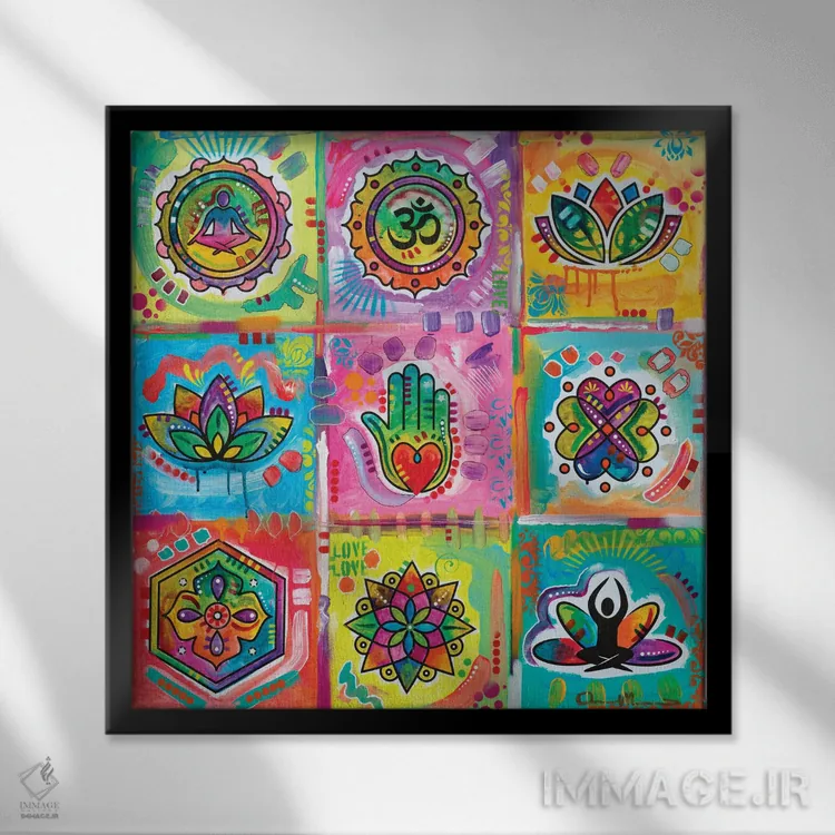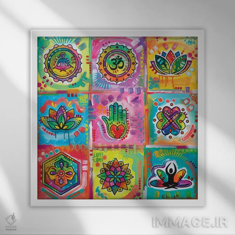 وقتی چیدمان را با دقت میچینید، «مربعهای مدیتیشن» اثرِ «باور روسو» جلوهٔ رنگها را طبیعیتر و متعادلتر نشان میدهد؛ برای کنار کتابخانه یا میز کار پیشنهاد میشود. اگر میخواهید مهمانها مکث کنند، این اثر دلیل خوبیست.