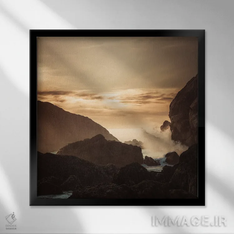 براساس پالت گرم اثر، قاب بلوط روشن (چوبی) پیشنهاد اول است و استخوانی ملایم مکمل. برای سفارشهای پروژهای با ابعاد و قابهای اختصاصی با ایماژ در تماس باشید.